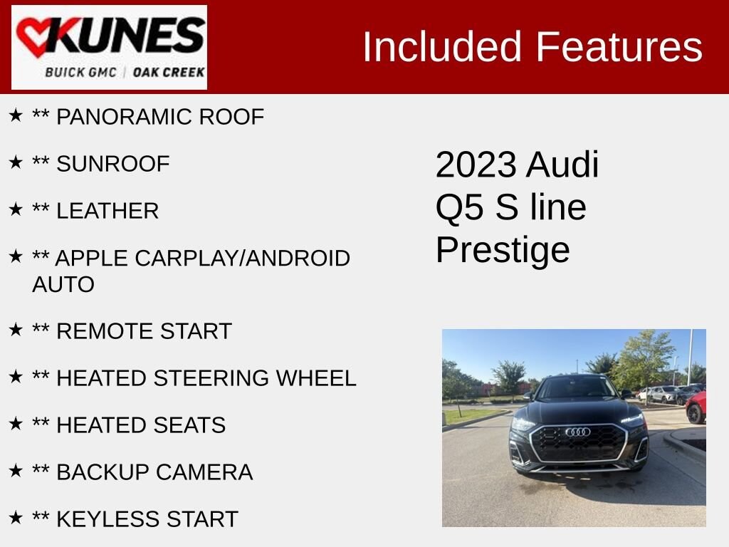 Q5 Prestige with Warm Weather package (Sport Seat both front seats identical with cool ventilation). Riding on air. There is no other way to put it. The sport seats difference other than cooling is “wings” that hold your butt and back in place, a 24 position electric adjustment on BOTH identical front seats with thigh support extenders, excellent for a couple with very bad backs. Power: watch out for fishtailing as you can feel G forces when accelerating, if you want. When researching a replacement for our sloppy 2017 Pilot I noticed most owners of other new vehicles in the south were complaining about AC unable to keep up with the Florida, Texas and desert heats. No problem here, the Q5 has more cool air than needed here at 5200’ in the sunny July southwest desert. Instrumentation is terrific with heads up display, maps and routing directly in front of the driver. (What is more ridiculous than the cars that put the map in the center stack and aim it straight to the rear of the car? Who is sitting on the shift to look forward at the map?) Moving on, the interior materials scream quality. Plenty of rear legroom for a knee replacement patient and headroom not a problem anywhere. Rear seats recline a couple inches. Owners manual very well written with detail. You can spend an evening laughing hysterically at the index though. Looking to program the garage door opener? Look in a subcategory under “O”, “Open and Close”! It goes on, and kept us looking up things just to laugh at where they are. Summarizing: most comfortable luxurious road rocket I’ve ever owned.… - 5.0