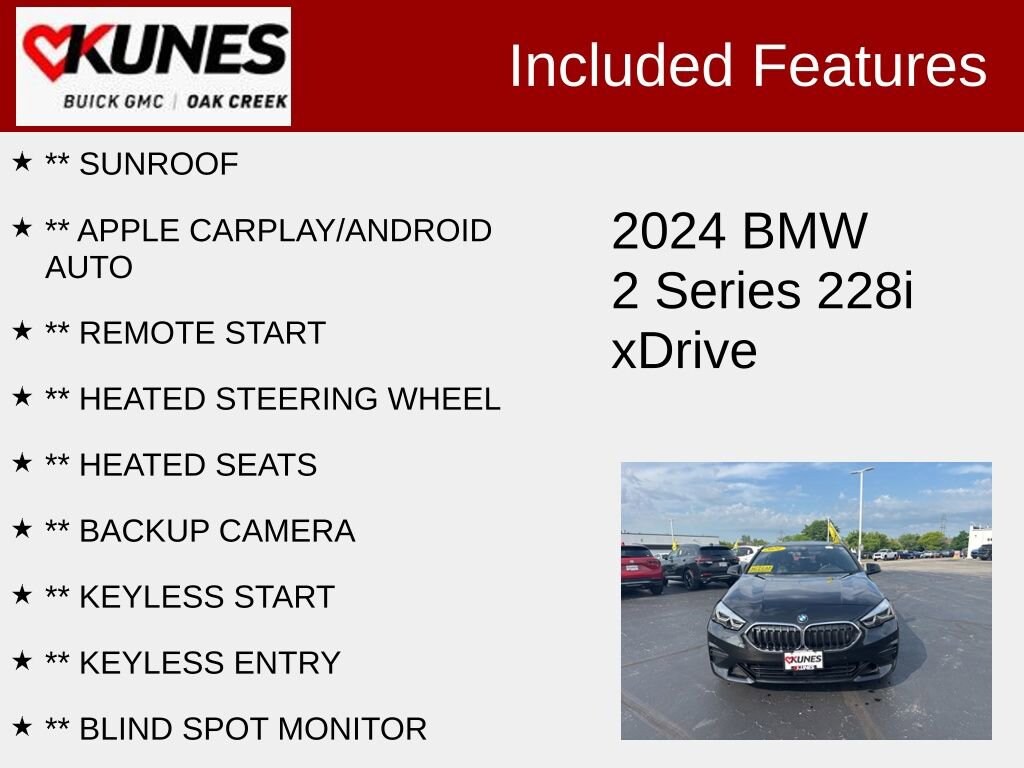 Convenience Package with panoramic sunroof and hands-free liftgate Heated front seats and heated steering wheel Blind spot monitoring with backup camera Navigation system with Apple CarPlay and Android Auto 2.0L I-4 Turbocharged engine with 8-speed automatic transmission Full-time all-wheel drive (xDrive) Black Sapphire Metallic exterior with premium synthetic interior Multi-zone climate control with auto-dimming mirrors 12-way power driver seat and 10-way power passenger seat Front collision mitigation with lane departure warning LED headlights with auto-leveling and automatic high beams WiFi hotspot with smart device integration Premium audio with satellite radio Power folding heated mirrors with memory Front and rear parking sensors Illuminated Brooklyn trim accents All-season performance tires with aluminum wheels Multiple airbags and advanced safety features Remote engine start capability Regenerative braking system
