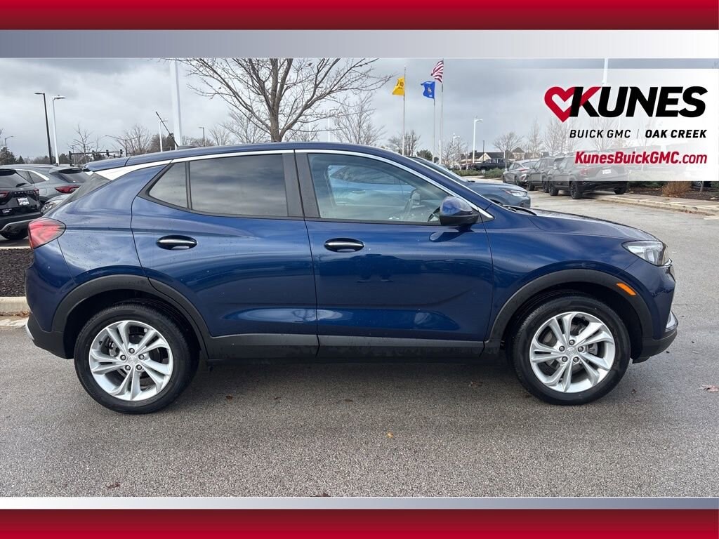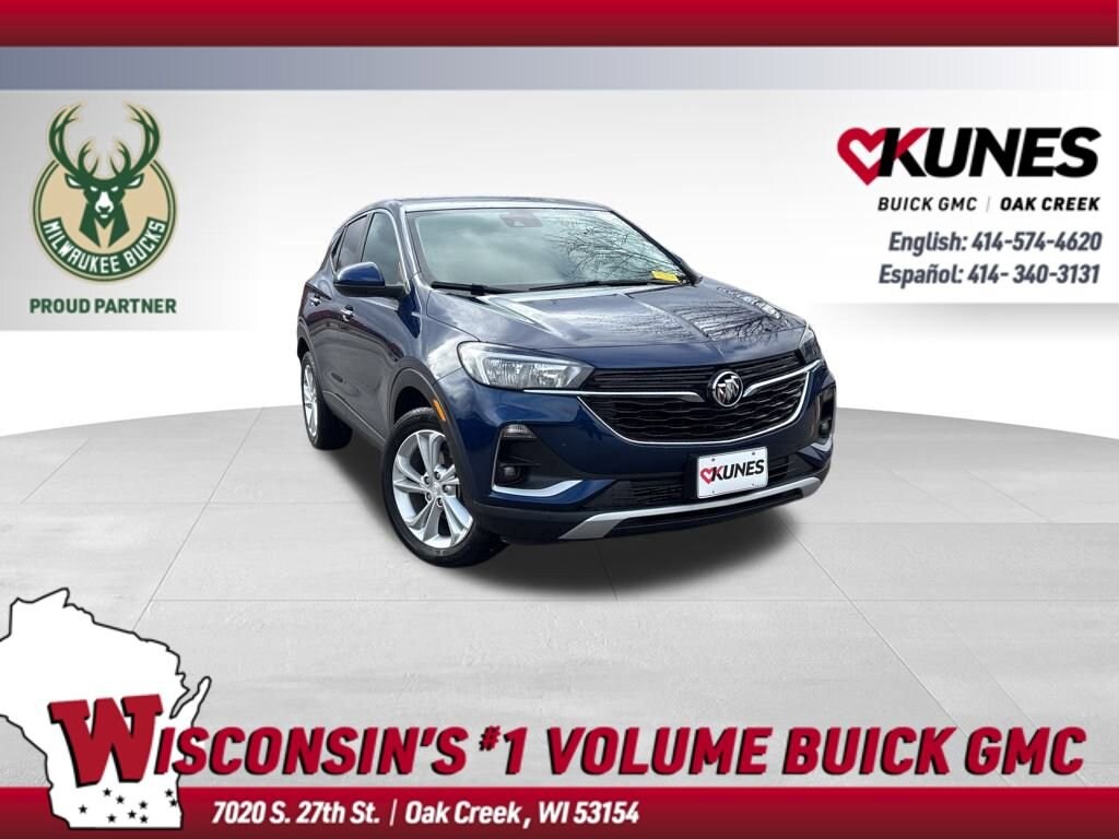 2023 Buick Encore GX Preferred Sapphire Metallic FWD ECOTEC 1.2L TurboRecent Arrival! CARFAX One Owner. Cold Weather Comfort Package: heated front seats, power driver seat with lumbar, remote engine start Sapphire Metallic exterior Back-up camera Apple CarPlay and Android Auto compatibility Turbocharged 1.2L I-3 engine Automatic headlights with highbeams Fog lamps and aluminum wheels Privacy glass, laminated windshield Heated side mirrors Keyless entry and keyless start Power windows and power door locks Cruise control and leather steering wheel Satellite radio and WiFi hotspot Rear seat pass-through and bucket seats Cloth seats with premium synthetic trim Front collision warning and mitigation Lane keep assist and lane departure warning Multiple airbags: front, side, knee, and rear seat Stability and traction control Tire pressure monitor Electronic parking brake and anti-lock disc brakes