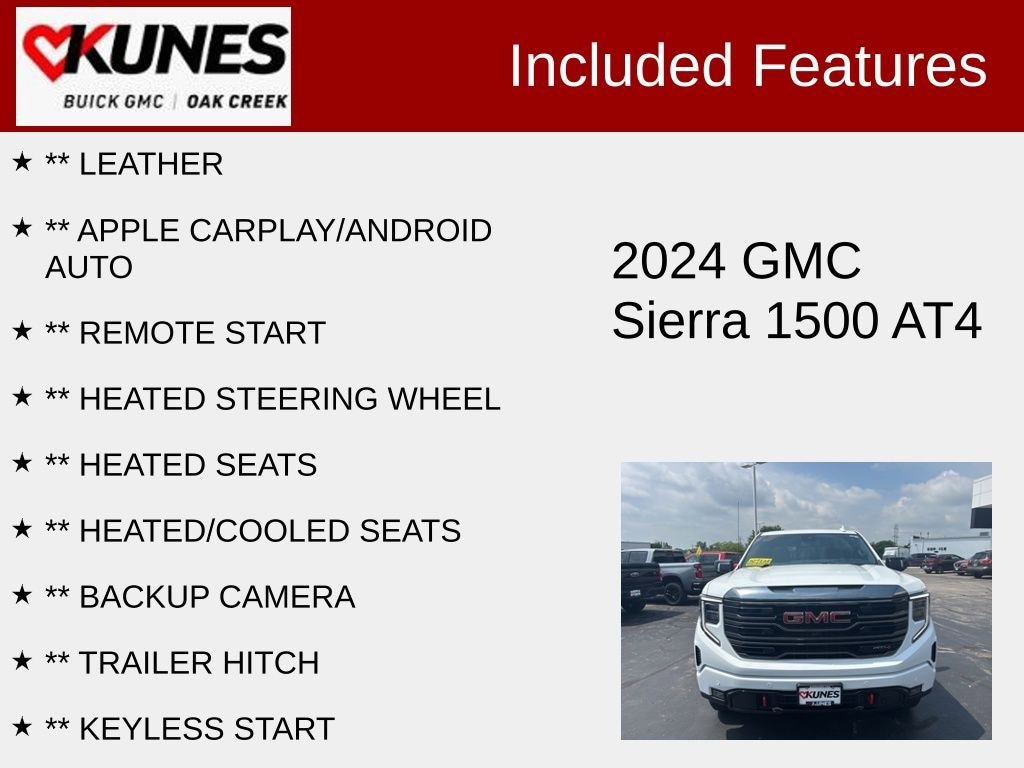 AT4 Premium Package includes premium running boards and enhanced storage solutions 3.0L I-6 Diesel Turbocharged engine paired with 10-speed automatic transmission Four-wheel drive with locking differential and tow package Advanced safety suite with lane keeping, collision warning, and cross-traffic alert Adaptive cruise control with multi-zone climate control Premium sound system with integrated technology interface Leather seats with power adjustments and driver memory settings 360-degree camera system with aerial view display Aluminum wheels with all-season tires for all positions Automatic LED headlights with daytime running lights Power-folding mirrors with heating and memory functions Keyless entry and remote engine start capabilities Heavy-duty battery with 850 cold-cranking amps Integrated bed liner with cargo tie-downs Body-color bumpers with corner steps for easy bed access Privacy glass and fog lamps for enhanced visibility Sliding rear window with universal garage door opener Premium center console with device management system Multiple air bags and comprehensive stability control Heavy-duty air filtration system