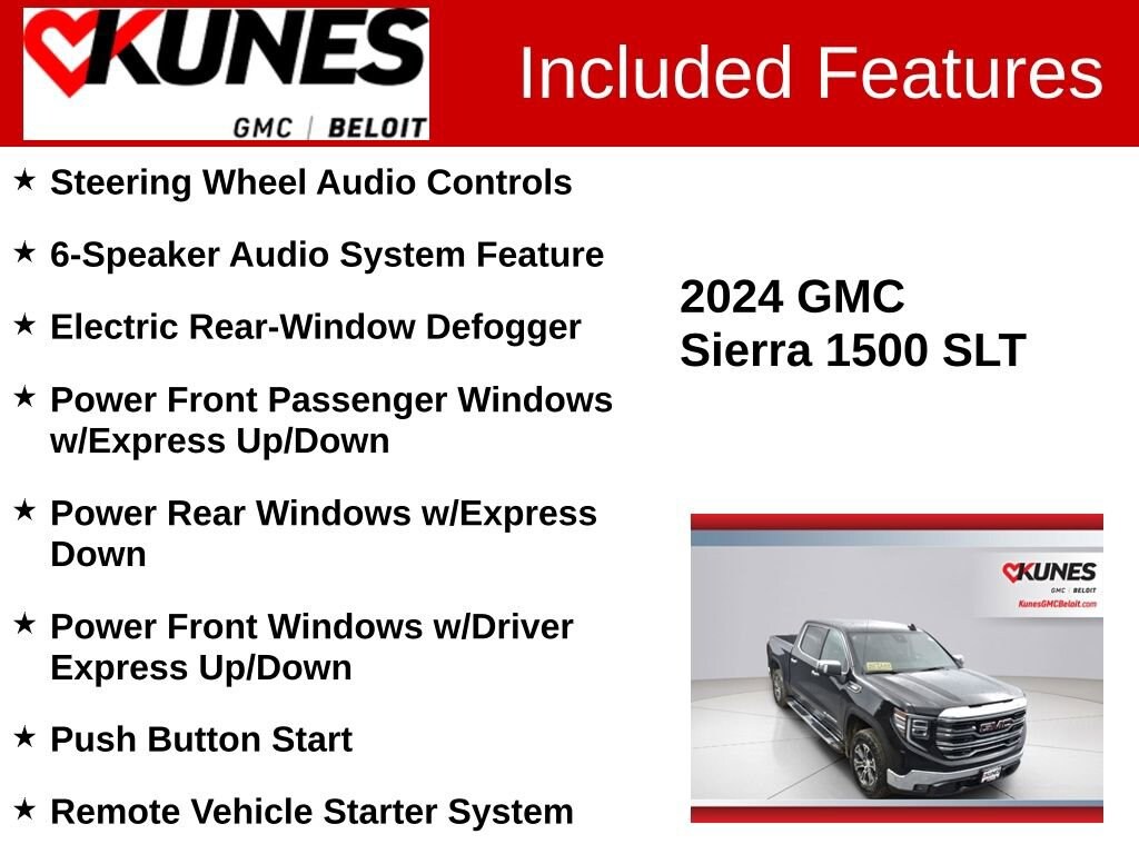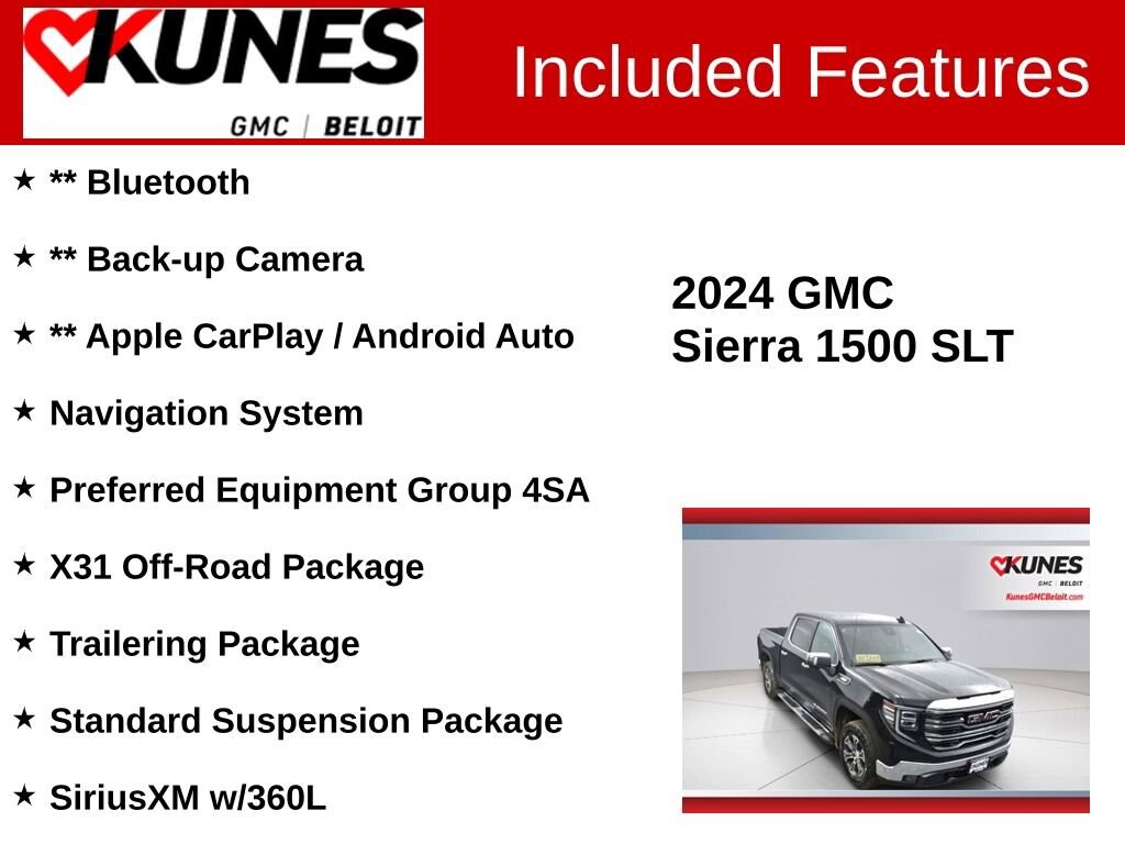Recent Arrival! 4D Crew Cab 2024 GMC Sierra 1500 SLT Onyx Black 4WD 10-Speed Automatic 3.0L I6 CARFAX One-Owner. Clean CARFAX. ** Bluetooth, ** Back-up Camera, ** Apple CarPlay / Android Auto, 10-Speed Automatic, 4WD, Jet Black Leather, 120-Volt Bed Mounted Power Outlet, 120-Volt Interior Power Outlet, 170 Amp Alternator, 2 Charge/Data USB Ports, 2 Type-C Charge-Only Rear USB Ports, 6-Speaker Audio System Feature, Auto-Locking Rear Differential, Auxiliary External Transmission Oil Cooler, Chrome Header & Chrome Grille Insert Bars, Color-Keyed Carpeting Floor Covering, Deep-Tinted Glass, Dual Exhaust System, Electric Rear-Window Defogger, Front Frame-Mounted Black Recovery Hooks, Front Rain-Sensing Wipers, GMC Connected Access Capable, HD Rear Vision Camera, Heavy-Duty Air Filter, Hill Descent Control, Hitch Guidance, Keyless Open & Start, LED Cargo Area Lighting, Manual Tilt-Wheel & Telescoping Steering Column, Navigation System, Off-Road Suspension, OnStar & GMC Connected Services Capable, Perimeter Lighting, Power Door Locks, Power Front Passenger Windows w/Express Up/Down, Power Front Windows w/Driver Express Up/Down, Power Rear Windows w/Express Down, Preferred Equipment Group 4SA, Push Button Start, Rear Wheelhouse Liners, Remote Vehicle Starter System, SiriusXM w/360L, Standard Suspension Package, Steering Wheel Audio Controls, Theft Deterrent System (Unauthorized Entry), Trailering Package, Wi-Fi Hotspot Capable, X31 Hard Badge, X31 Off-Road Package.