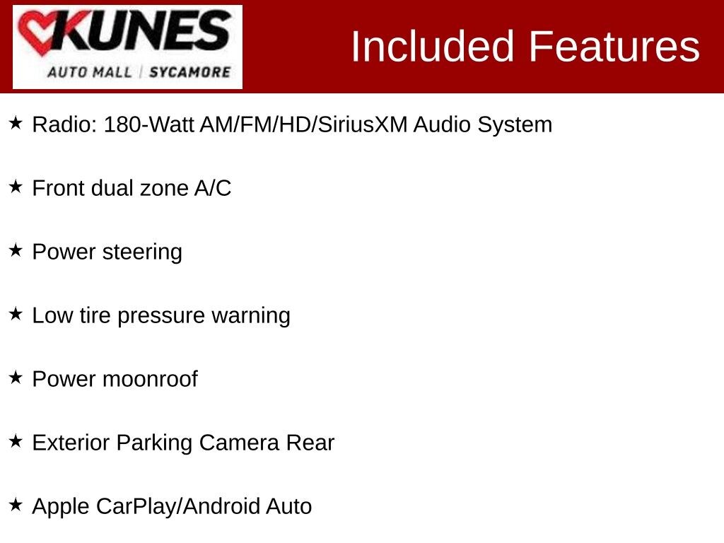 KUNES AUTO MALL OF SYCAMORE - Kunes Auto Group is dedicated to building peopleâs lives in the communities we serve. Weâre family-owned and operated. Gregg Kunes started with Kunes Ford Lincoln in Delavan, Wisconsin in 1996, and over the years we have grown to 40 automobile and RV dealerships throughout the Midwest. Our mission is to not only deliver exceptional customer service, but to serve our communities well in the form of projects, promotions, support, donations, and whatever else is needed. Find out why our dealerships have won DealerRater.com DEALER OF THE YEAR a whopping 10 TIMES! Call, email, or live chat with one of our friendly sales professionals now to schedule your test drive! Price excludes taxes, license and title fees and a documentary service fee. While we make every effort to ensure the data listed here is correct, there may be instances where some of the options or vehicle features may be listed incorrectly as we get data from multiple data sources. PLEASE MAKE SURE to confirm the details of this vehicle with the dealer to ensure its accuracy. Dealer cannot be held liable for data that is listed incorrectly. Prices shown do not include taxes, license, and title fees and a $367.70 documentary service fee.