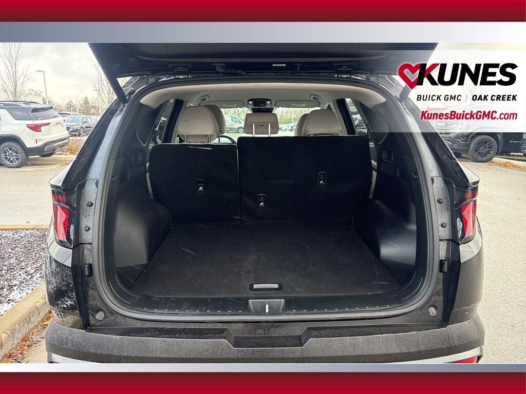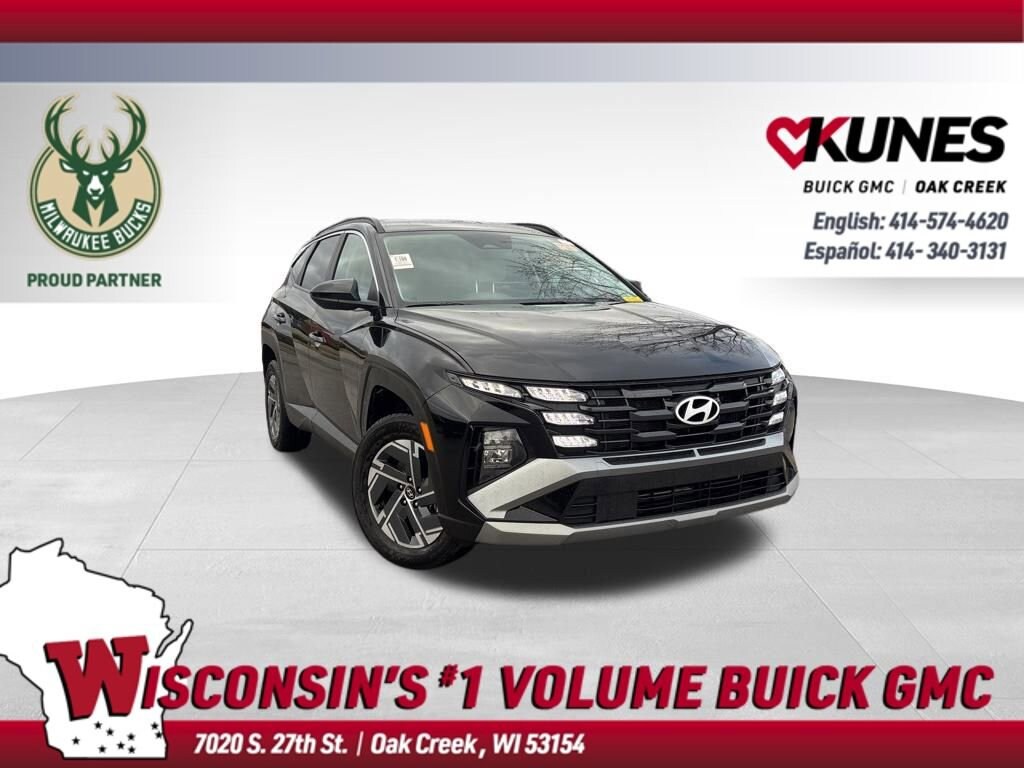2025 Hyundai Tucson Hybrid Blue Ash Black AWD 1.6L I4 DGI Hybrid Turbocharged DOHC 16V LEV3-SULEV30Recent Arrival! Includes Option Group 01 with advanced safety and convenience features Adaptive cruise control for smoother highway driving Heated front seats with power driver's seat and lumbar support Blind spot monitor enhances lane-changing safety Apple CarPlay, Android Auto, Bluetooth, and HD Radio connectivity Back-up camera with rear parking display Hands-free power liftgate for easy cargo access Keyless entry and push-button start Dual-zone automatic climate control Power windows, locks, and mirrors 8-inch touchscreen with AM/FM/Satellite radio, MP3 capability 60/40 split rear seat and flat cargo floor for flexible storage Front and rear collision mitigation with lane keeping assist Front, side, and curtain airbags with driver monitoring 1.6L I-4 hybrid engine with all-wheel drive Aluminum wheels and privacy glass Automatic LED headlights and daytime running lights Rear spoiler and black exterior trim accents Two 12V power outlets and rearview day/night mirror
