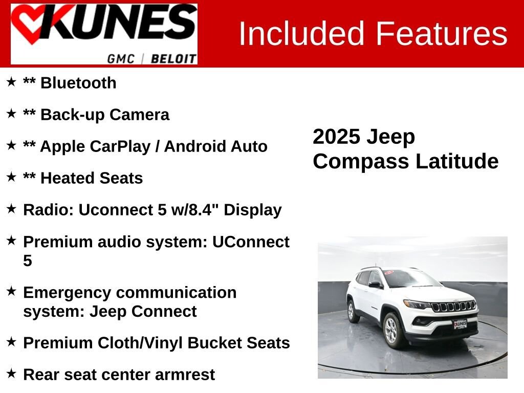 2025 Jeep Compass Latitude Bright White Clearcoat 4WD 2.0L I4 DOHC
