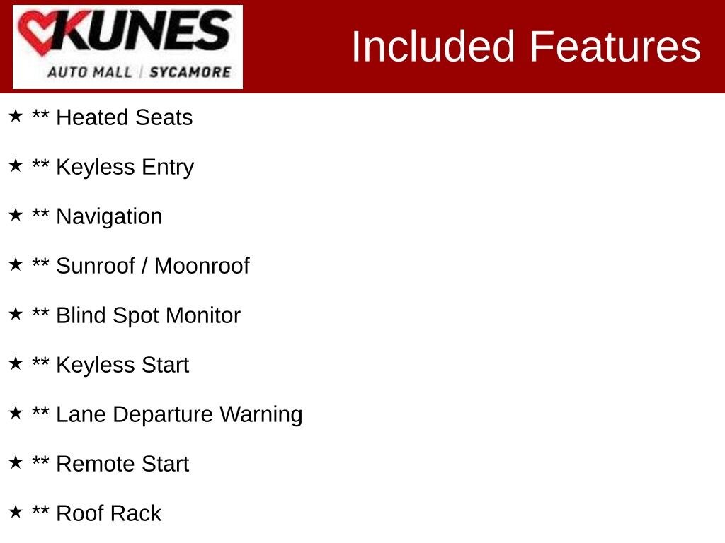 ⢠Includes Equipment Group 201A with heated front and 2nd row seats, heated steering wheel, and rear heated seats