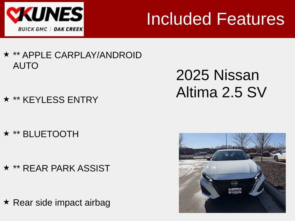 2025 Nissan Altima 2.5 SV Glacier White FWD 2.5L 4-Cylinder DOHC 16V