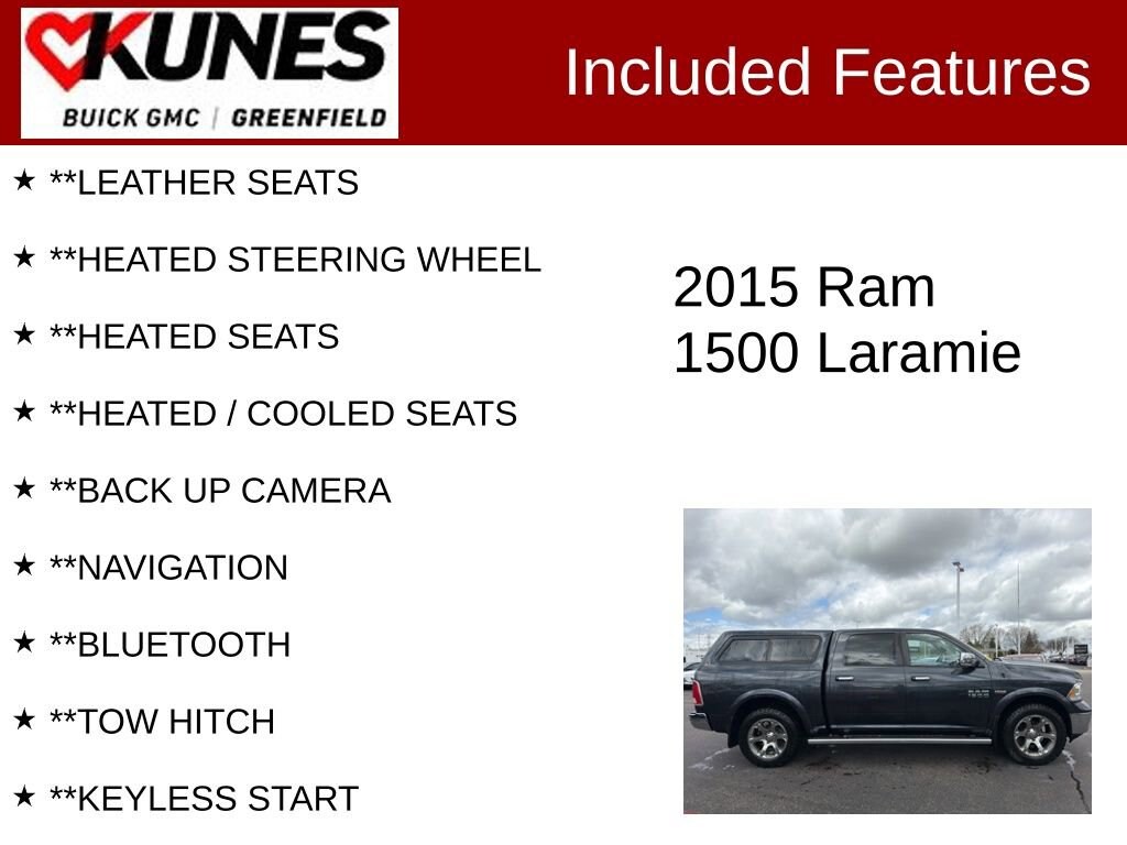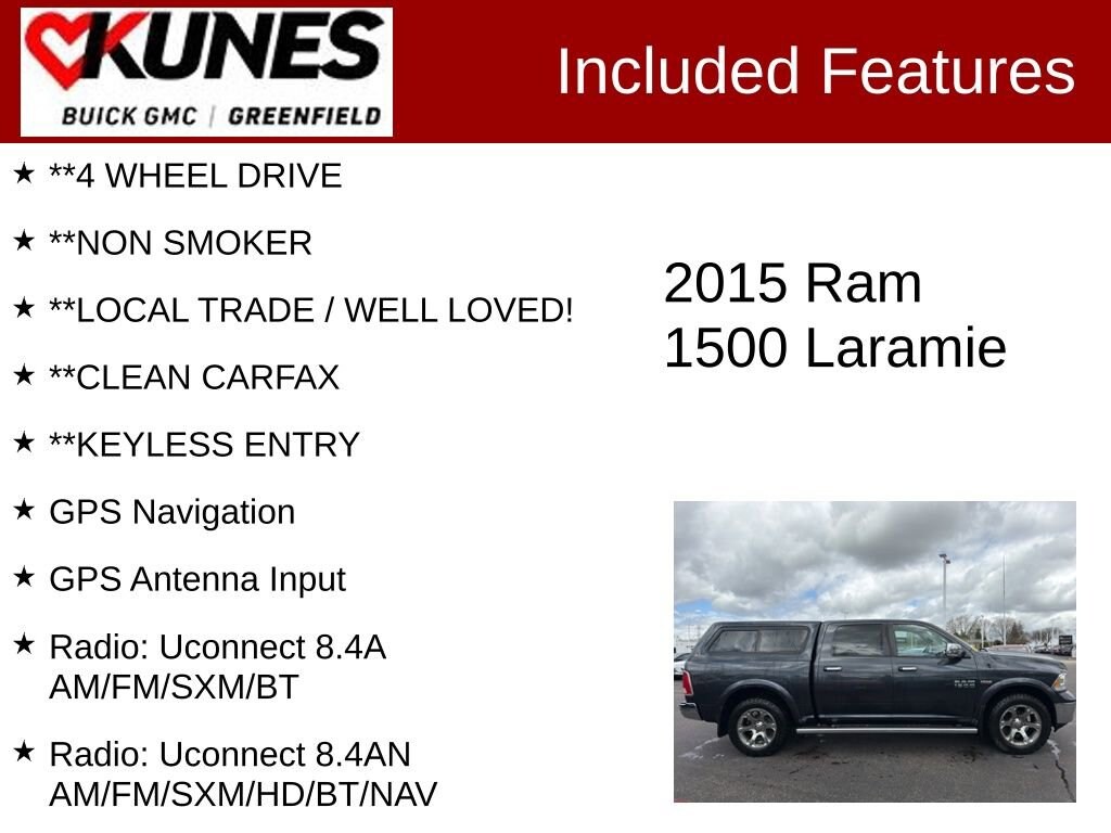 **LEATHER SEATS, **HEATED STEERING WHEEL, **HEATED SEATS, **HEATED / COOLED SEATS, **BACK UP CAMERA, **NAVIGATION, **BLUETOOTH, **TOW HITCH, **KEYLESS START, **4 WHEEL DRIVE, **NON SMOKER, **LOCAL TRADE / WELL LOVED!, **CLEAN CARFAX, **KEYLESS ENTRY, 115V Auxiliary Power Outlet, 5-Year SiriusXM Travel Link Service, Active Grille Shutters, Audio memory, Bumpers: chrome, Center Hub, Compass, Delay-off headlights, Driver door bin, Driver vanity mirror, Electronic Shift, Emergency communication system, Folding Flat Load Floor Storage, Front anti-roll bar, Front Center Armrest w/Storage, Front reading lights, Front wheel independent suspension, GPS Antenna Input, GPS Navigation, Harman Radio Manufacturer, HD Radio, Heated Front Seats, Heated front seats, Heated steering wheel, High Back Seats, Illuminated entry, Keyless Enter-N-Go, Leather Trim 40/20/40 Bench Seat, Media Hub (SD, USB, AUX), Occupant sensing airbag, Outside temperature display, Overhead airbag, Overhead console, Panic alarm, ParkView Rear Back-Up Camera, Passenger door bin, Passenger vanity mirror, Power door mirrors, Power passenger seat, Radio data system, Radio: Uconnect 8.4A AM/FM/SXM/BT, Radio: Uconnect 8.4AN AM/FM/SXM/HD/BT/NAV, Rear anti-roll bar, Rear seat center armrest, Remote keyless entry, Remote Proximity Keyless Entry, SIRIUSXM Satellite Radio, Split folding rear seat, Tachometer, Tilt steering wheel, Trip computer, Ventilated Front Seats, Ventilated front seats, Voltmeter.