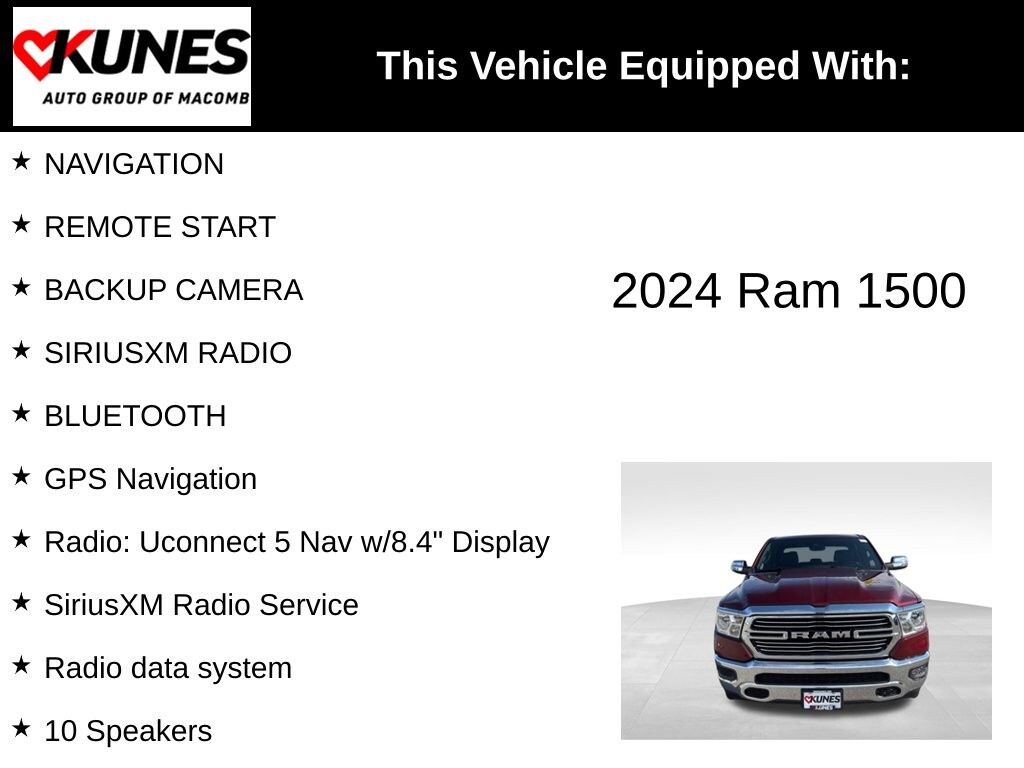 2024 Ram 1500 Laramie Delmonico Red Pearlcoat 4WD HEMI 5.7L V8 Multi Displacement VVT eTorque
