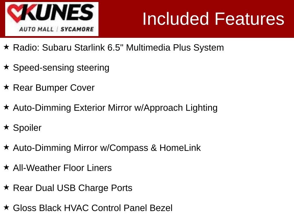 - Radio: Subaru Starlink 6.5" Multimedia Plus System