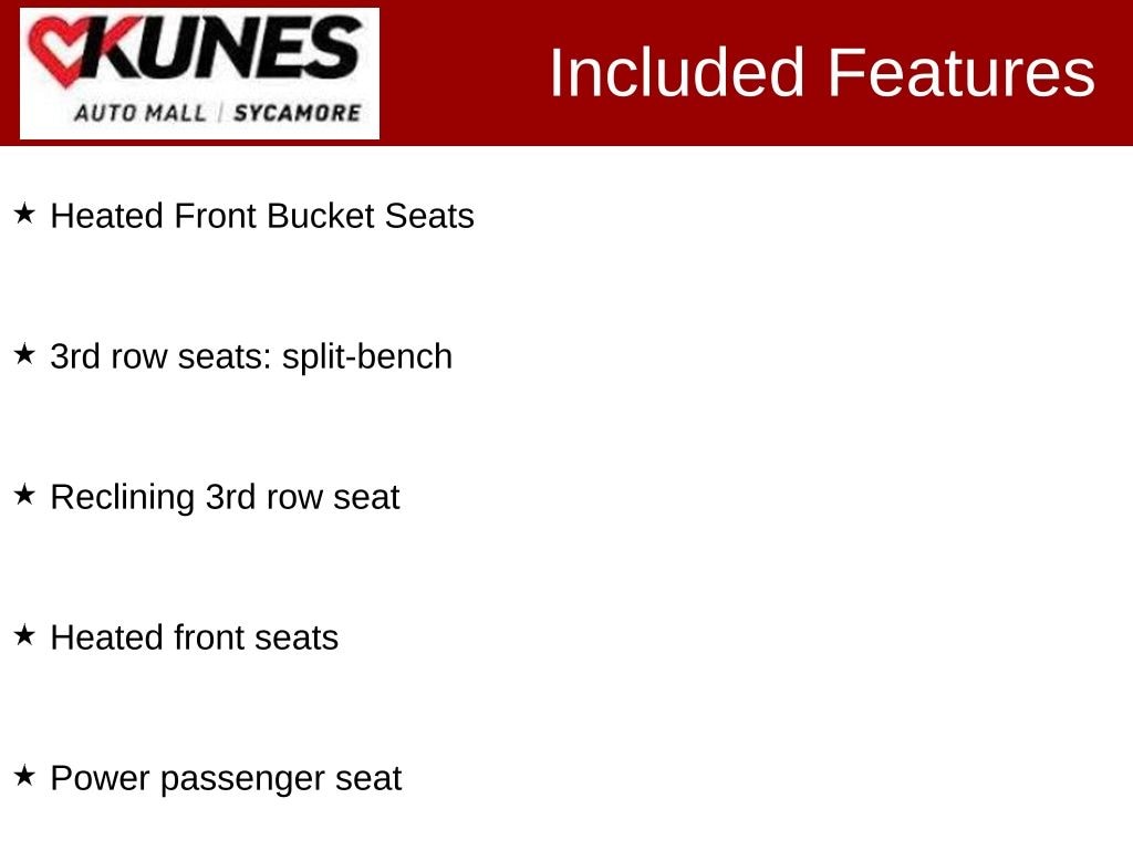 KUNES AUTO MALL OF SYCAMORE - Kunes Auto Group is dedicated to building people's lives in the communities we serve. We're family-owned and operated. Gregg Kunes started with Kunes Ford Lincoln in Delavan, Wisconsin in 1996, and over the years we have grown to 40 automobile and RV dealerships throughout the Midwest. Our mission is to not only deliver exceptional customer service, but to serve our communities well in the form of projects, promotions, support, donations, and whatever else is needed. Find out why our dealerships have won DealerRater.com DEALER OF THE YEAR a whopping 10 TIMES! Call, email, or live chat with one of our friendly sales professionals now to schedule your test drive! Price excludes taxes, license and title fees and a $377.63 documentary service fee. While we make every effort to ensure the data listed here is correct, there may be instances where some of the options or vehicle features may be listed incorrectly as we get data from multiple data sources. PLEASE MAKE SURE to confirm the details of this vehicle with the dealer to ensure its accuracy. Dealer cannot be held liable for data that is listed incorrectly. Prices shown do not include taxes, license, and title fees and a $377.63 documentary service fee.